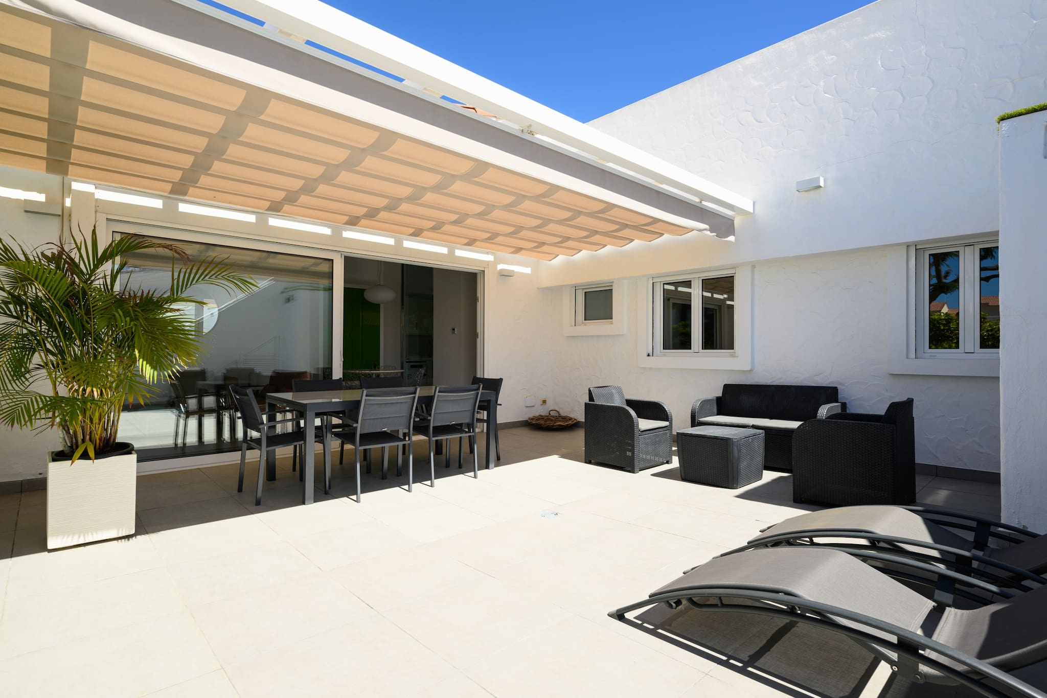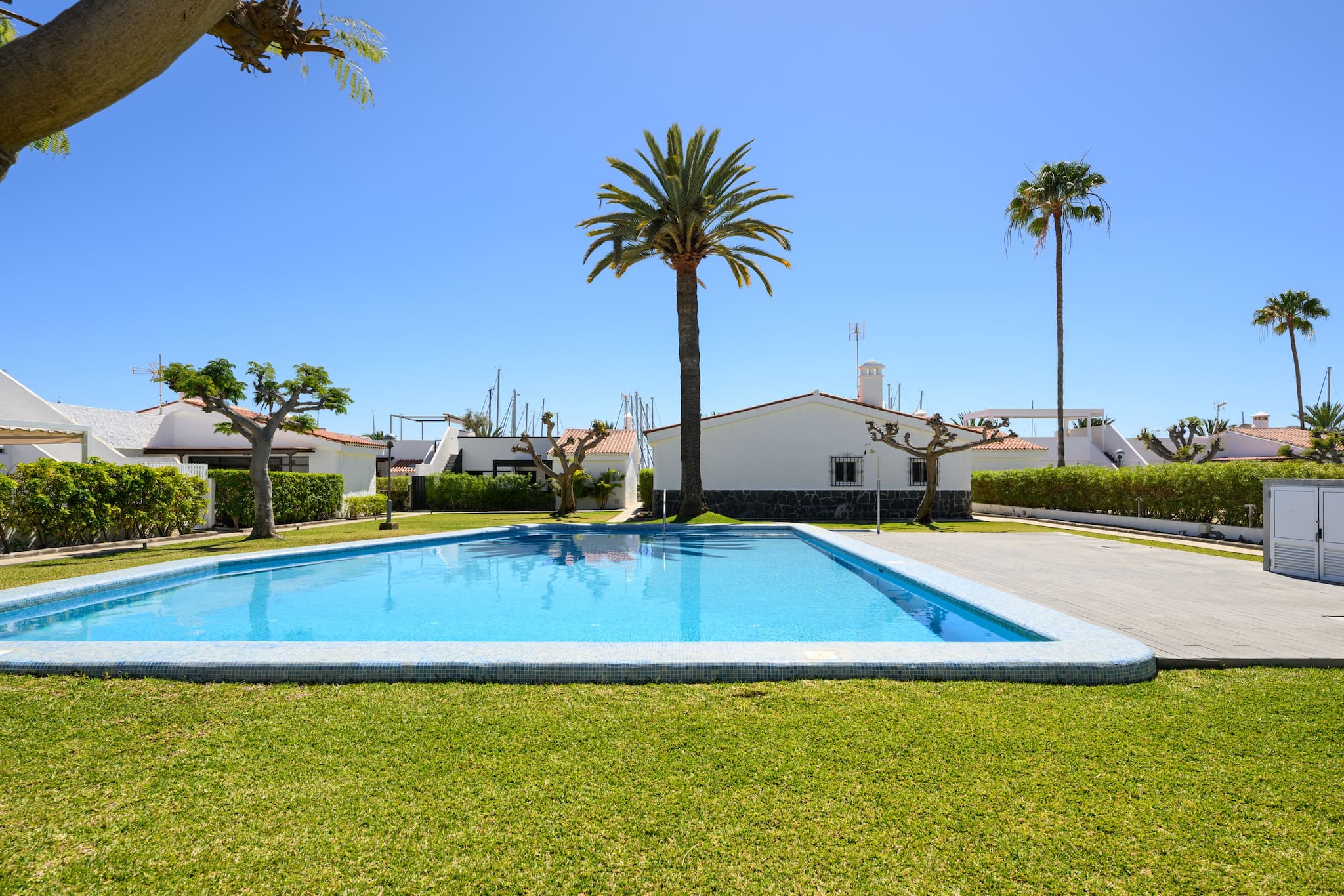 Der Bungalow in Pasito Blanco verfügt über 3 Schlafzimmer und hat eine Kapazität für 5 Person(en). Unterkunft verfügt über 100 m². Die Unterkunft verfügt über einen Garten, Gartenmöbel, ein umzäuntes Grundstück, eine Terrasse, eine Waschmaschine, einen Trockner, einen Grillplatz, ein Bügeleisen/-brett, ein Internetanschluss (WLAN), ein Föhn, eine elektrische Heizung, eine Klimaanlage, einen Gemeinschaftspool, einen Parkplatz im Freien in Grundstücksnähe, ein Fernsehgerät, Satelliten-TV.Die Offene Küche mit elektrisches Kochfeld ist ausgestattet in einen Kühlschrank, eine Mikrowelle, ein Backofen, Gefrierschrank, eine Spülmaschine, Geschirr/Besteck, Kochutensilien, eine Kaffeemaschine, einen Toaster, einen Wasserkocher und eine Saftpresse.