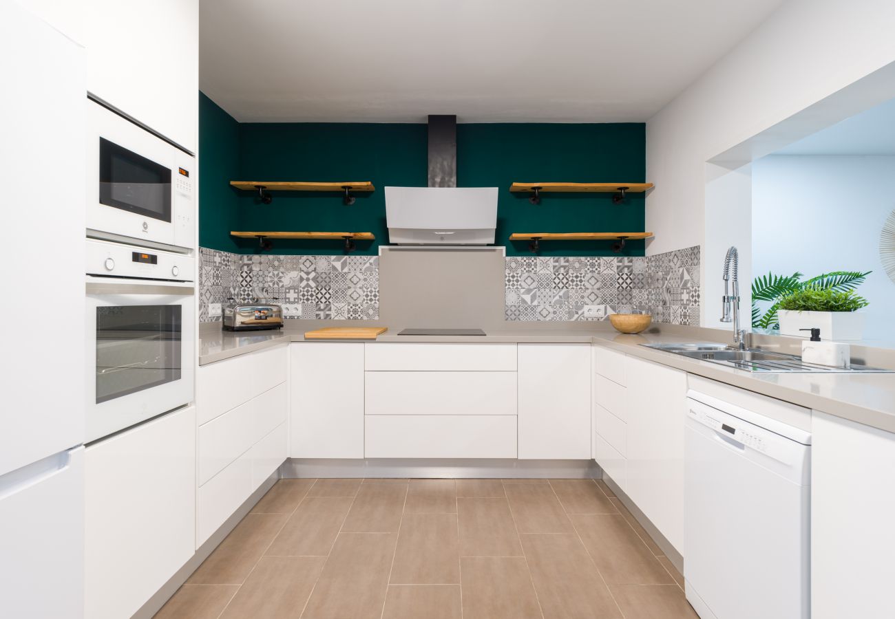 Die Offene Küche mit Ceranfeld ist ausgestattet in einen Kühlschrank, eine Mikrowelle, ein Backofen, Gefrierschrank, eine Spülmaschine, Geschirr/Besteck, Kochutensilien, eine Kaffeemaschine, einen Toaster, einen Wasserkocher und eine Saftpresse.