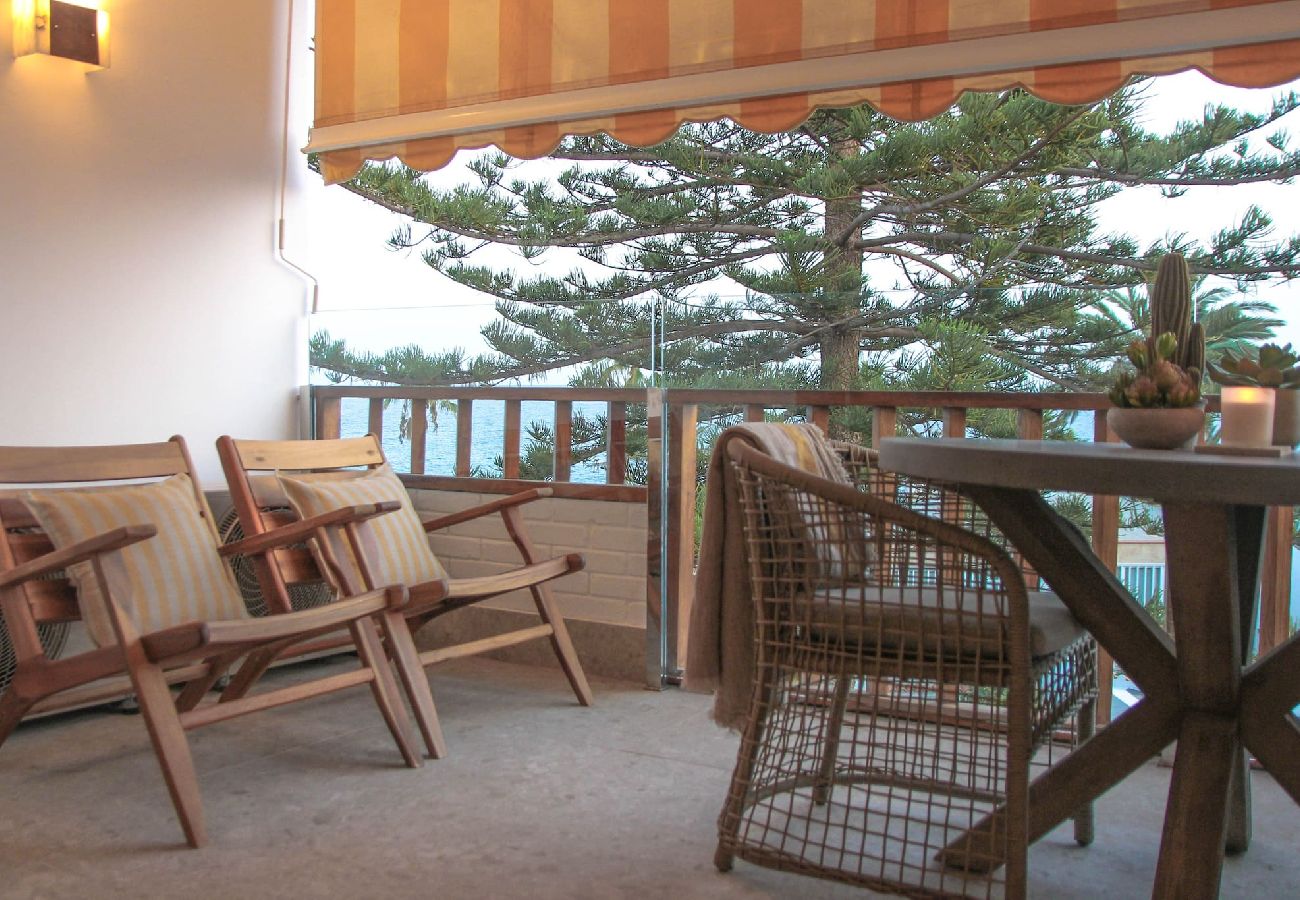 El apartamento cuenta con una cocina totalmente equipada que incluye microondas / horno, lavavajillas y lavadora, una sala de estar con un cómodo sofá y una televisión inteligente grande, un balcón con terraza con muebles de comedor al aire libre y vistas al mar, un dormitorio con cama extragrande y un baño completo con ducha a ras de suelo.