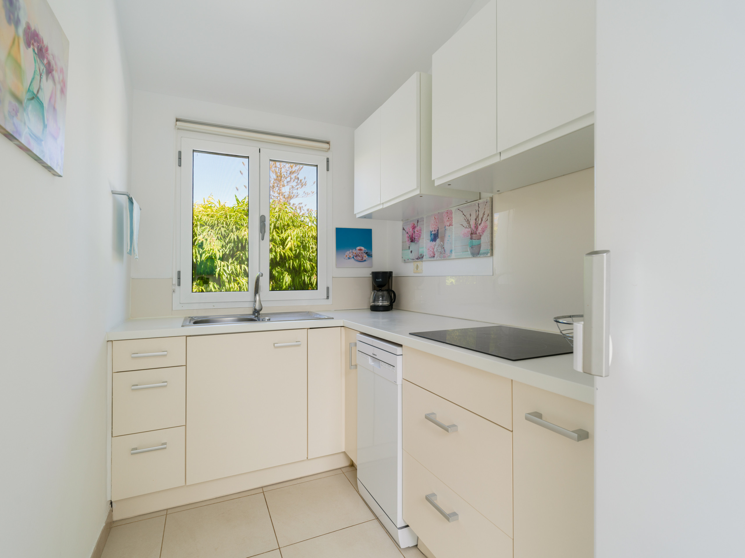 La casa se distribuye en una sola planta y consta de un amplio salón con smart tv, zona de comedor y cocina indepedendiente totalmente equipada, una terraza privada, un solárium privado con vistas al mar en la azotea, dos dormitorios con cama de matrimonio, y dos baños completos con plato de ducha. Los huéspedes también tienen acceso a una gran piscina común.