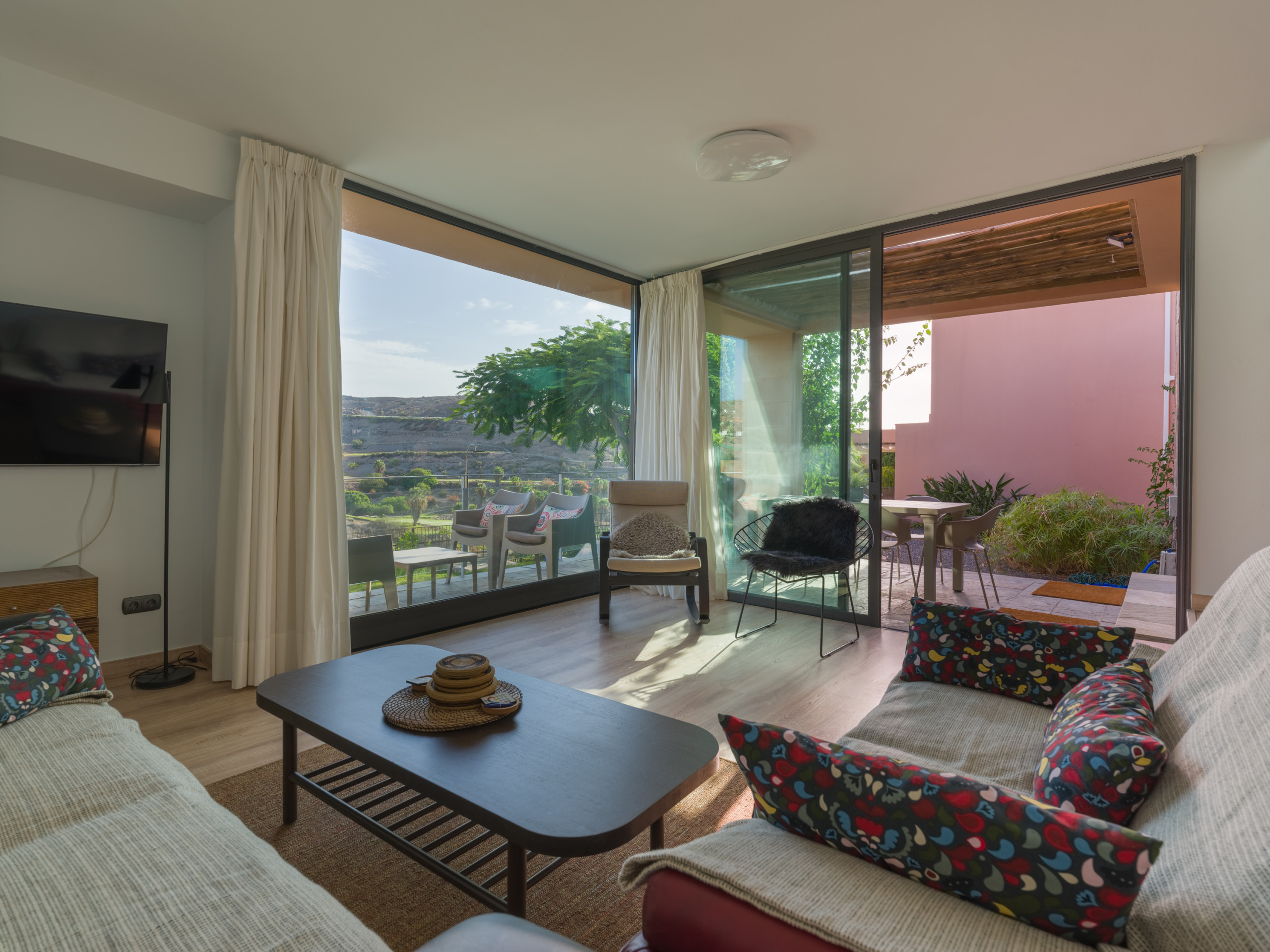 Situada en uno de los mejores resorts de golf de la isla, con maravillosos campos de golf, y a sólo 10 minutos de la famosa playa de Maspalomas, orientada al sureste con maravillosas vistas. Rodeado de naturaleza, silencio y tranquilidad, permite una estancia relajada en la mejor parte de la isla, muy cerca de sus principales atracciones turísticas pero sin el ruido de sus calles y zonas comerciales. Es perfecta para pasar unas vacaciones disfrutando de actividades deportivas como golf, ciclismo o senderismo, o simplemente para relajarse con sesiones de yoga, masajes y paseos rodeados de naturaleza.