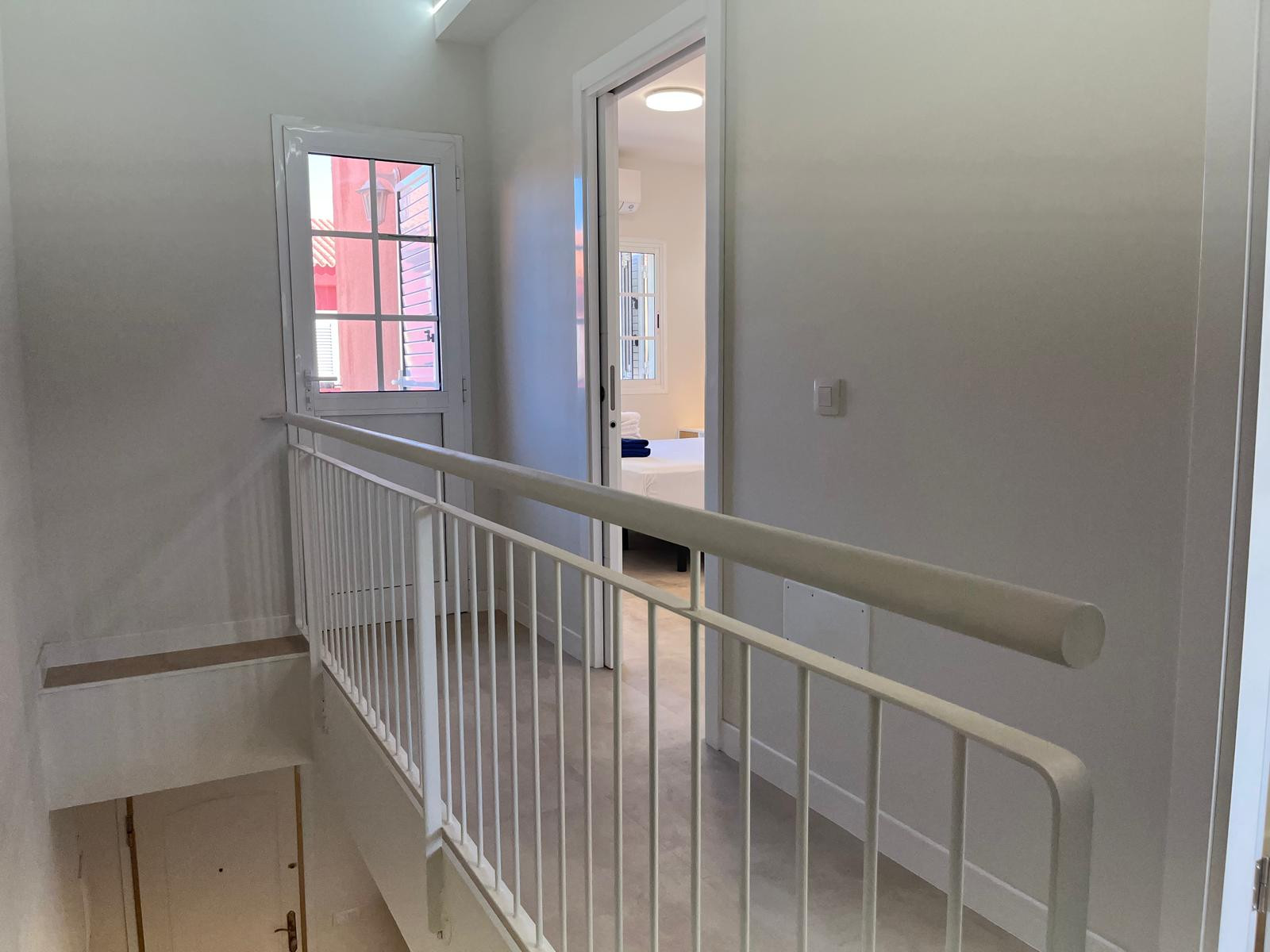 The house is distributed on 2 floors. The ground floor consists of a living room with smart tv, a fully-equipped kitchen, a sun terrace with seating area, outdoor shower and wonerful views, and a toilet. The top floor has 3 bedrooms and a full bathroom with shower. The master bedroom has a king size bed and dressing room, the second bedroom has two twin beds, and the third bedroom has a single bed. Two of the bedrooms have independent balconies with views.