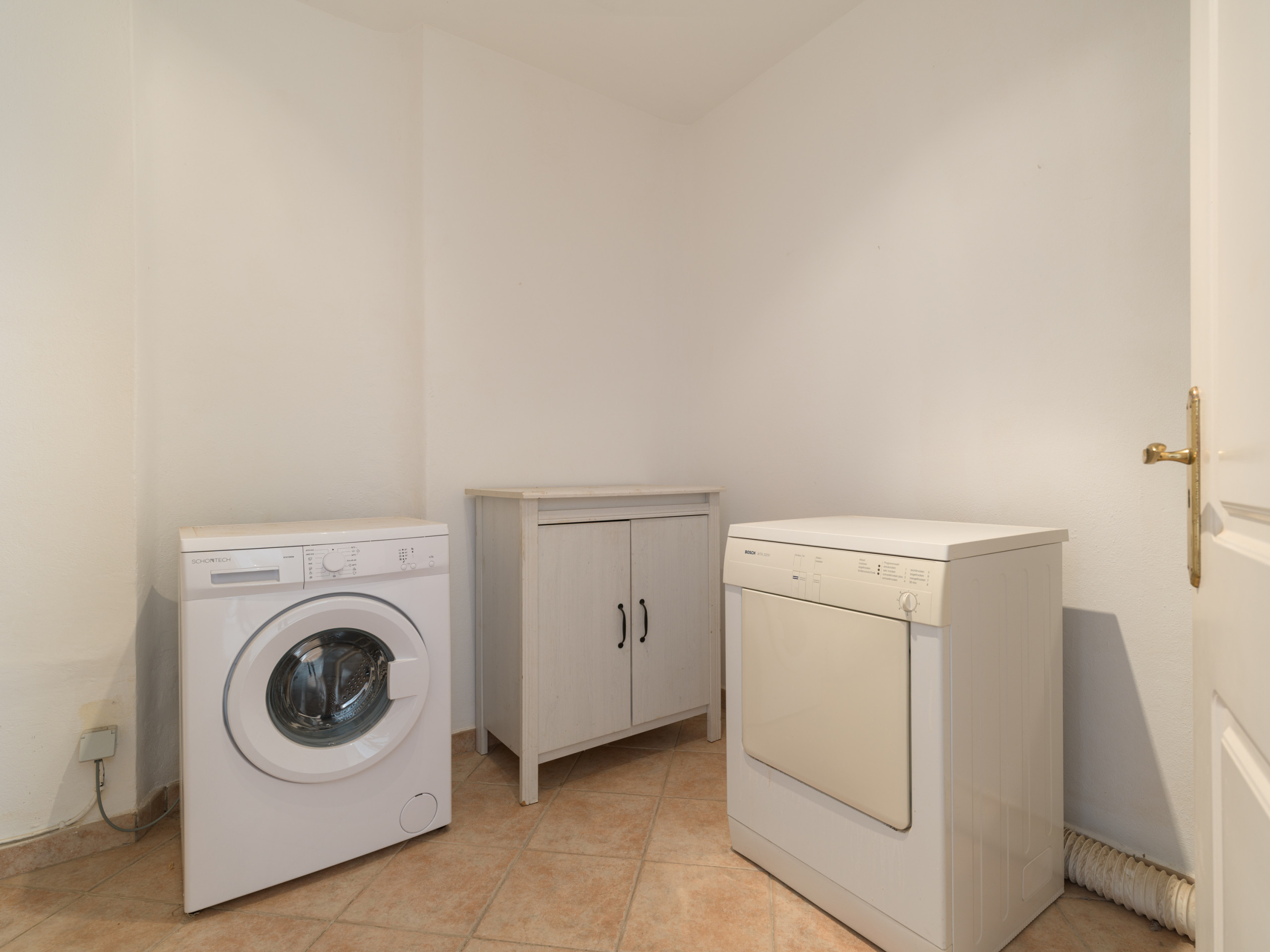 In the basement there is a central distributor with the access staircase and natural light from the house's roof, a living room, a third bedroom, and a laundry/dryer room.