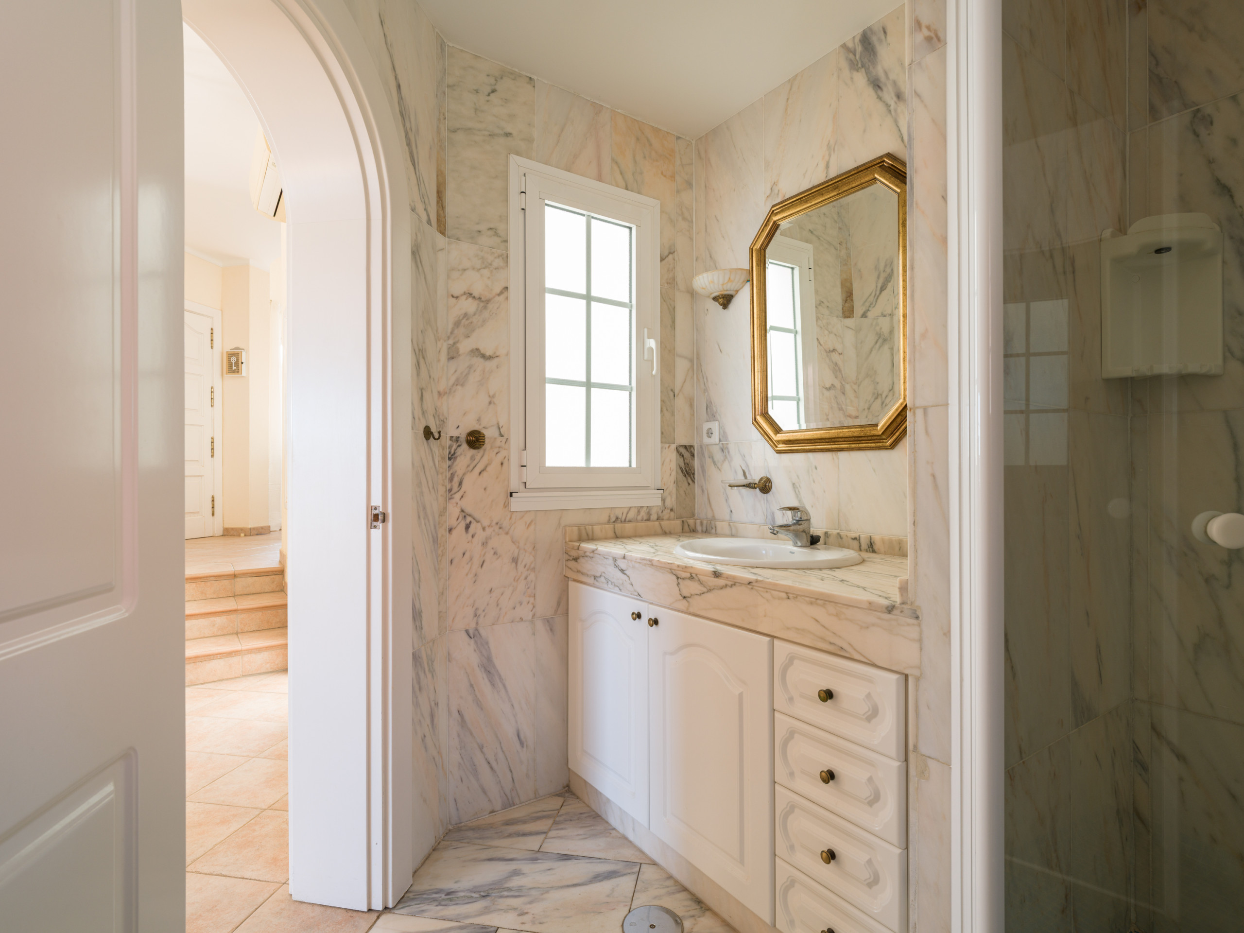 Top quality materials have been used for its construction, including stone walls. There is free WIFI and air conditioning throughout the villa. It has a private parking space for one vehicle, included in the price. It also has access to a bigger swimming pool for common use by the surrounding villas. The golf resort urbanisation is private, with continuous surveillance, supermarket, restaurants, and two complete golf courses. Access to the motorway is less than 1 km away and the airport is 20-25 minutes away.