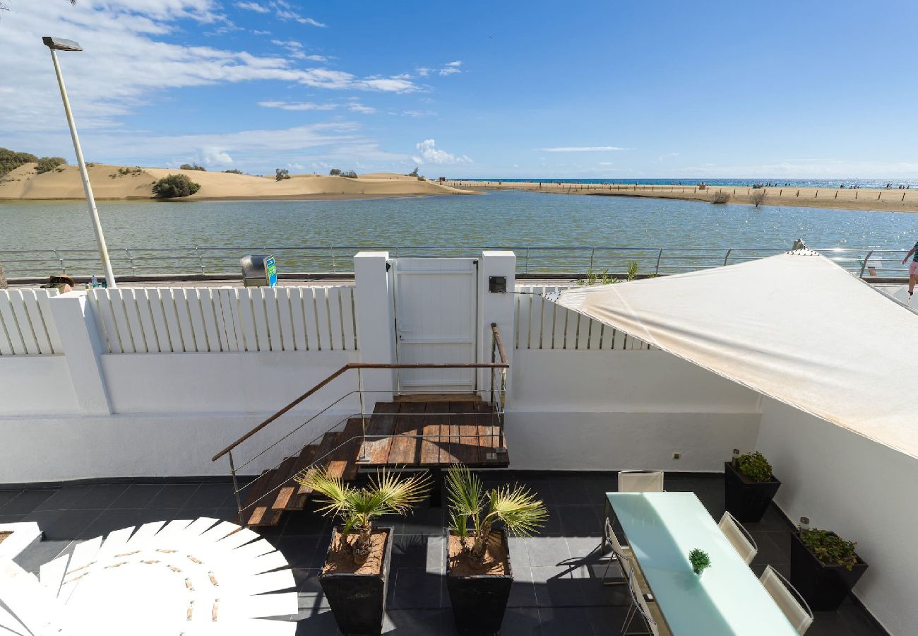 Renovated and fully equipped semi-detached villa located on the frontline of the Maspalomas Beach area with wonderful seaviews, salorium terrace and private parking, and with all services available for a perfect holiday in the best location of the south of Gran Canaria.