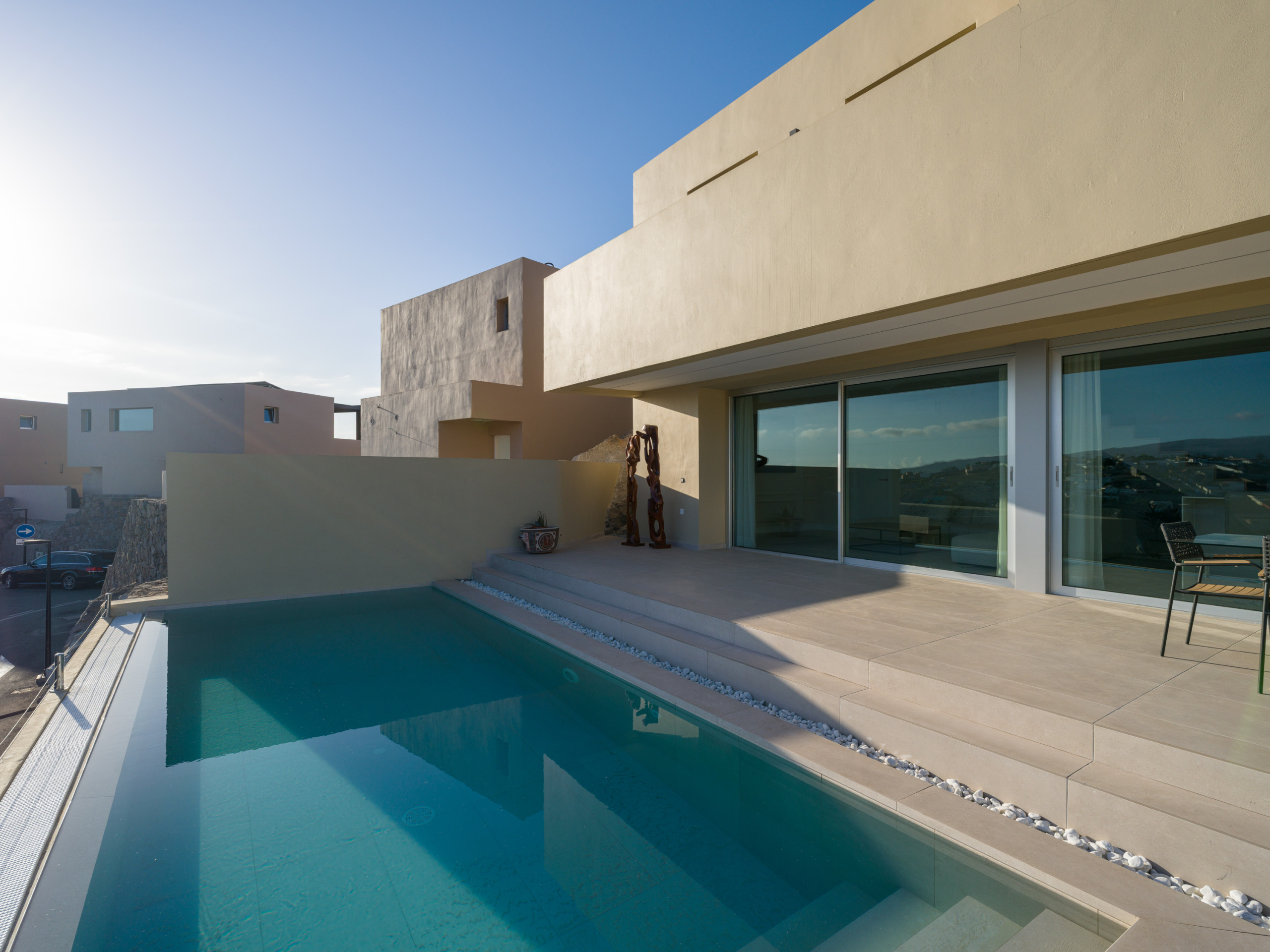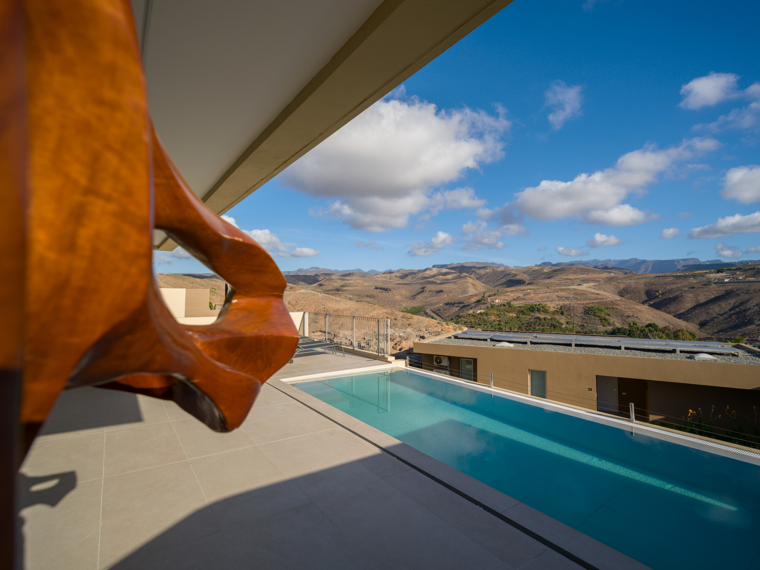 Located on one of the best golf resorts on the island, with two wonderful golf courses, and only 10 minutes away from the famous beach of Maspalomas, facing southeast with wonderful views. Surrounded by nature, silence and tranquility, it allows a relaxed stay on the best part of the island, very close from its main touristic attractions but without the noise of its streets and commercial areas. It is perfect to spend a holiday enjoying sport activities such as golf, cycling or trekking, or just relaxing with yoga sessions, massages and walks surrounded by nature.