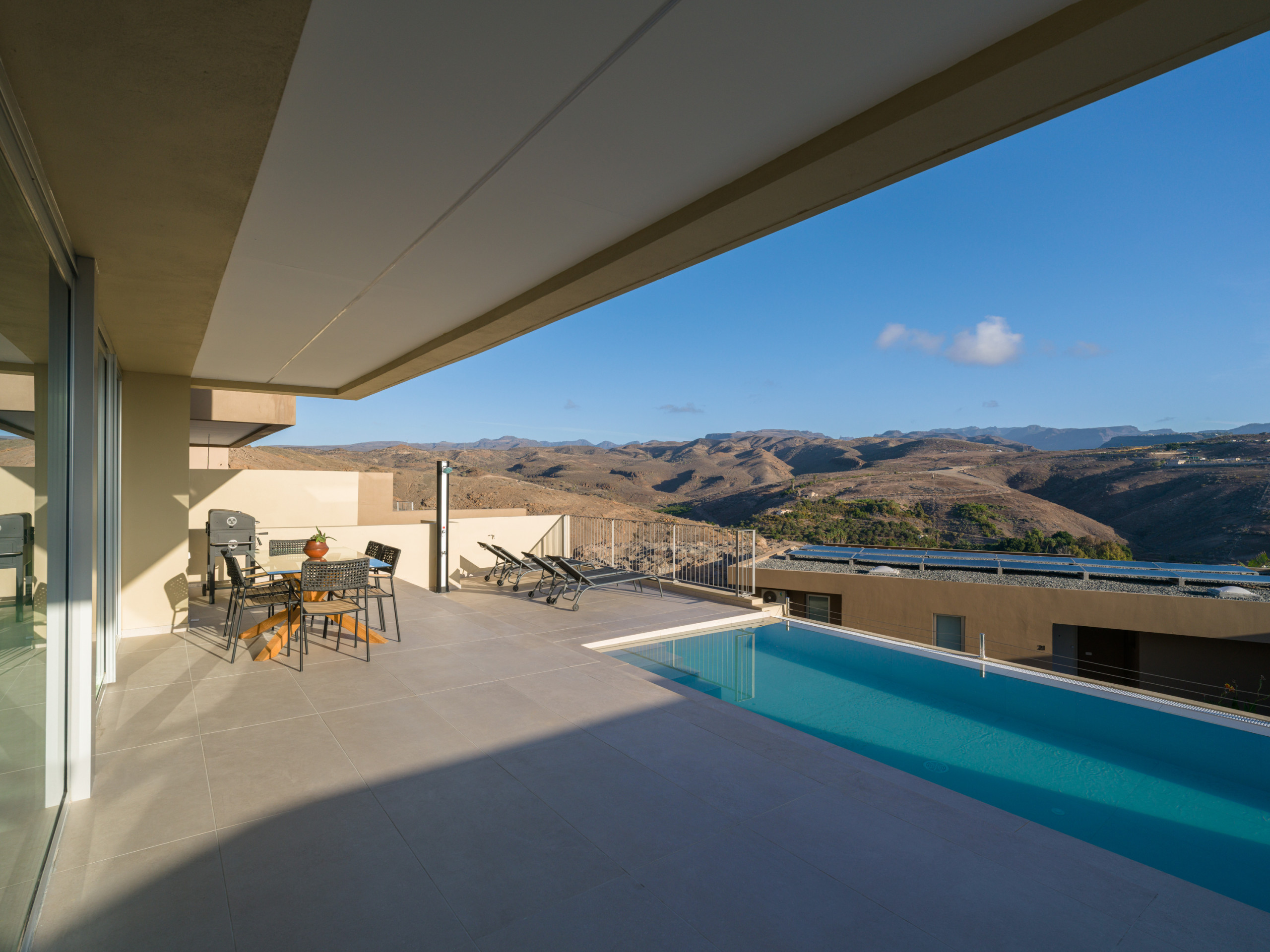 New construction, fully equipped villa with a terrace and private pool, located in the private Salobre Golf urbanization and surrounded by nature, with wonderful mountain views and all the amenities for a perfect holiday in the south of Gran Canaria.