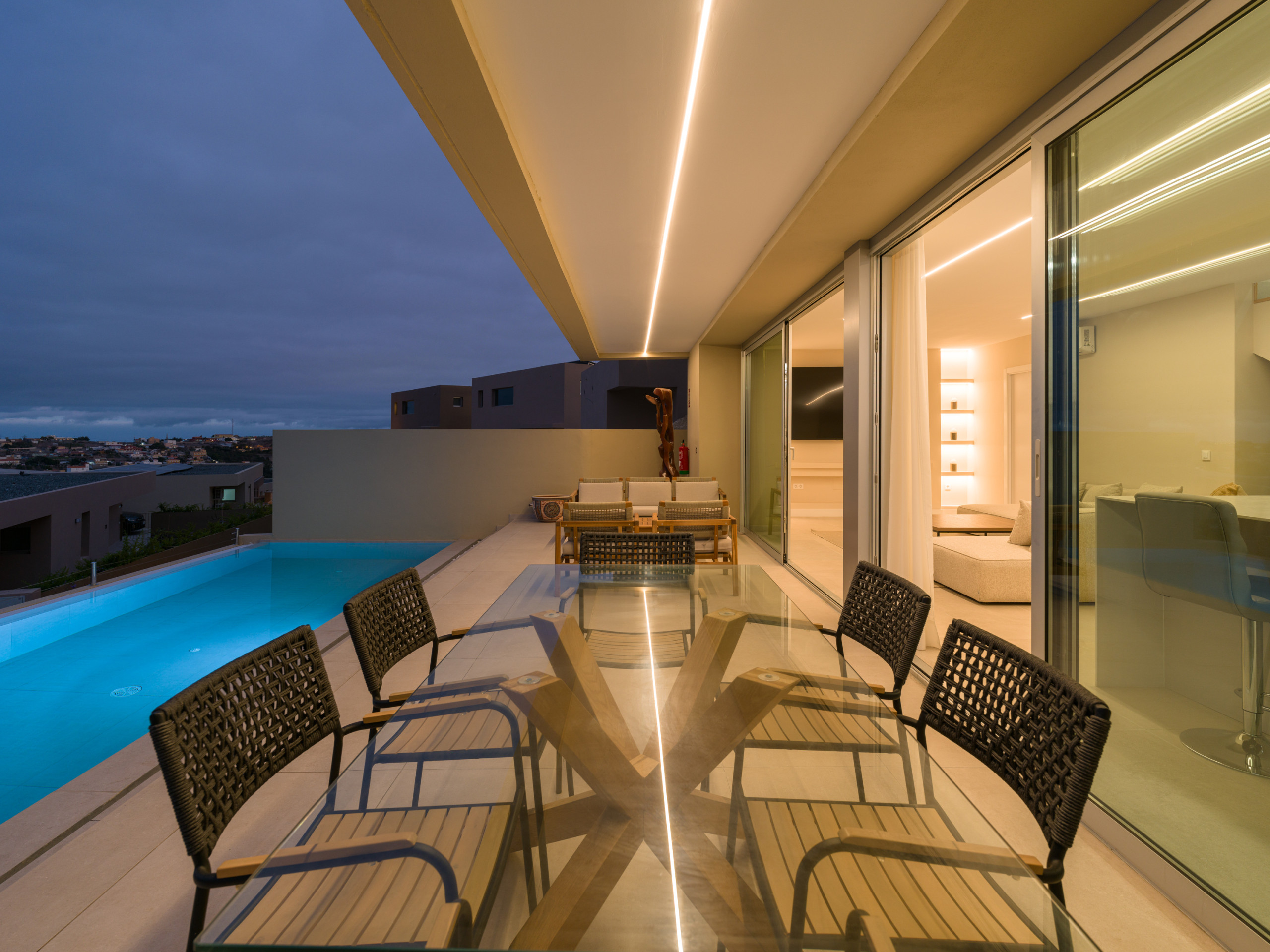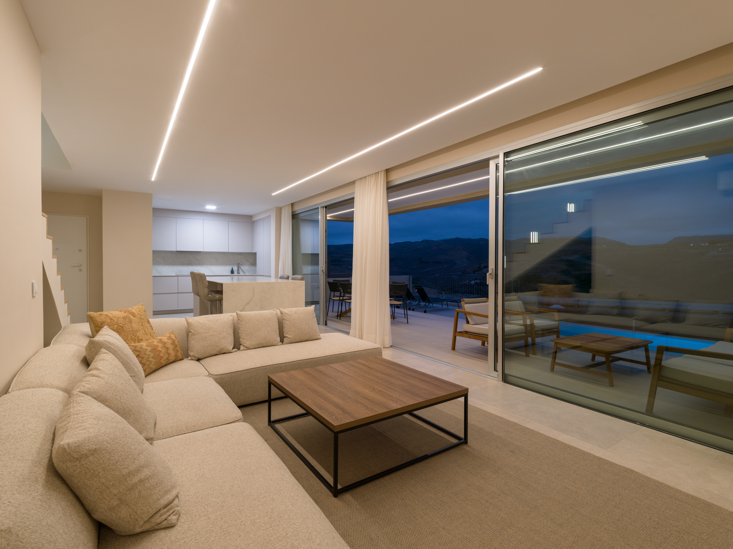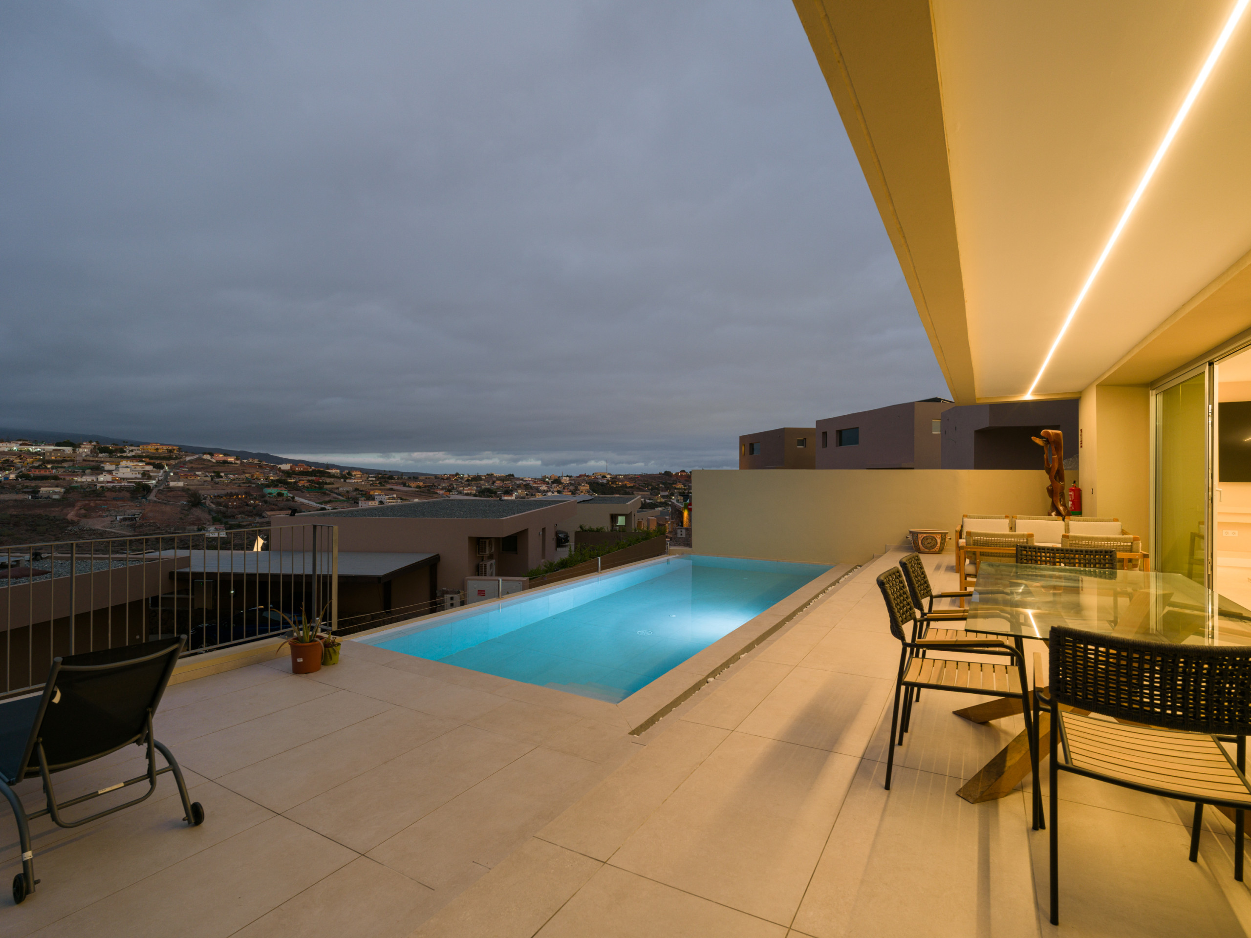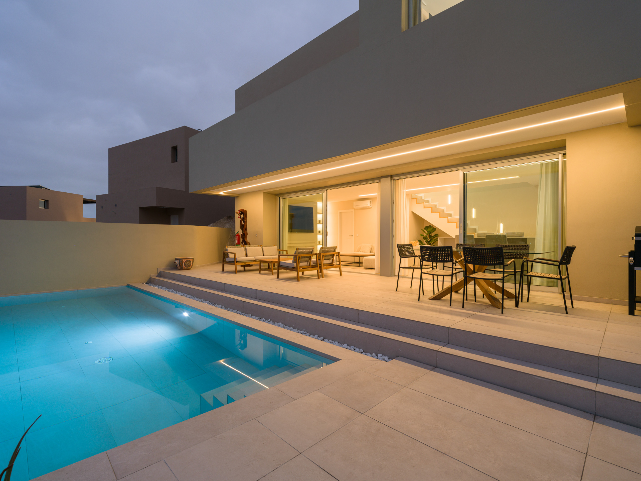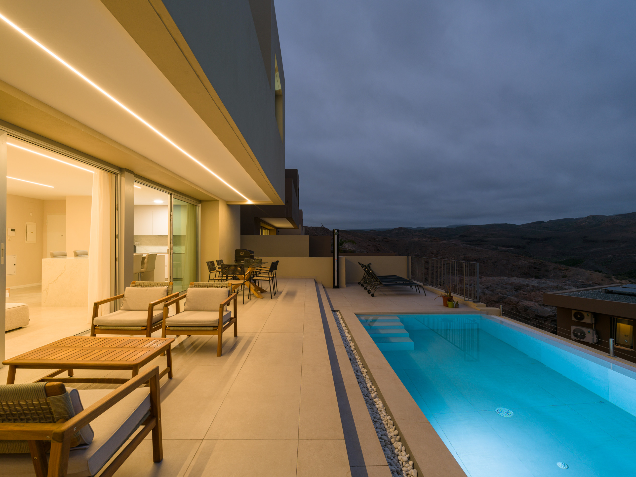 New construction, fully equipped villa with a terrace and private heated pool, located in the private Salobre Golf urbanization and surrounded by nature, with wonderful mountain views and all the amenities for a perfect holiday in the south of Gran Canaria.