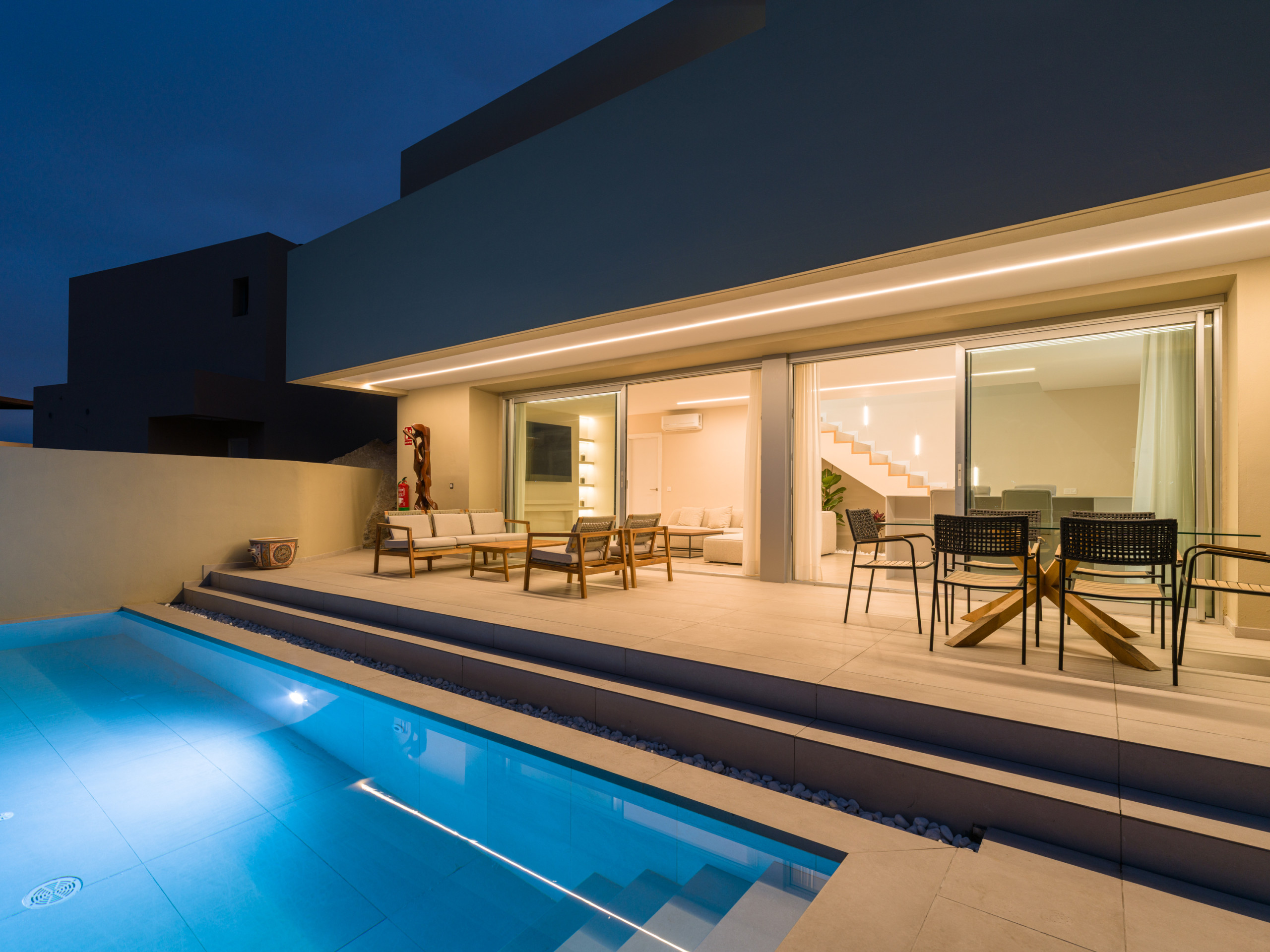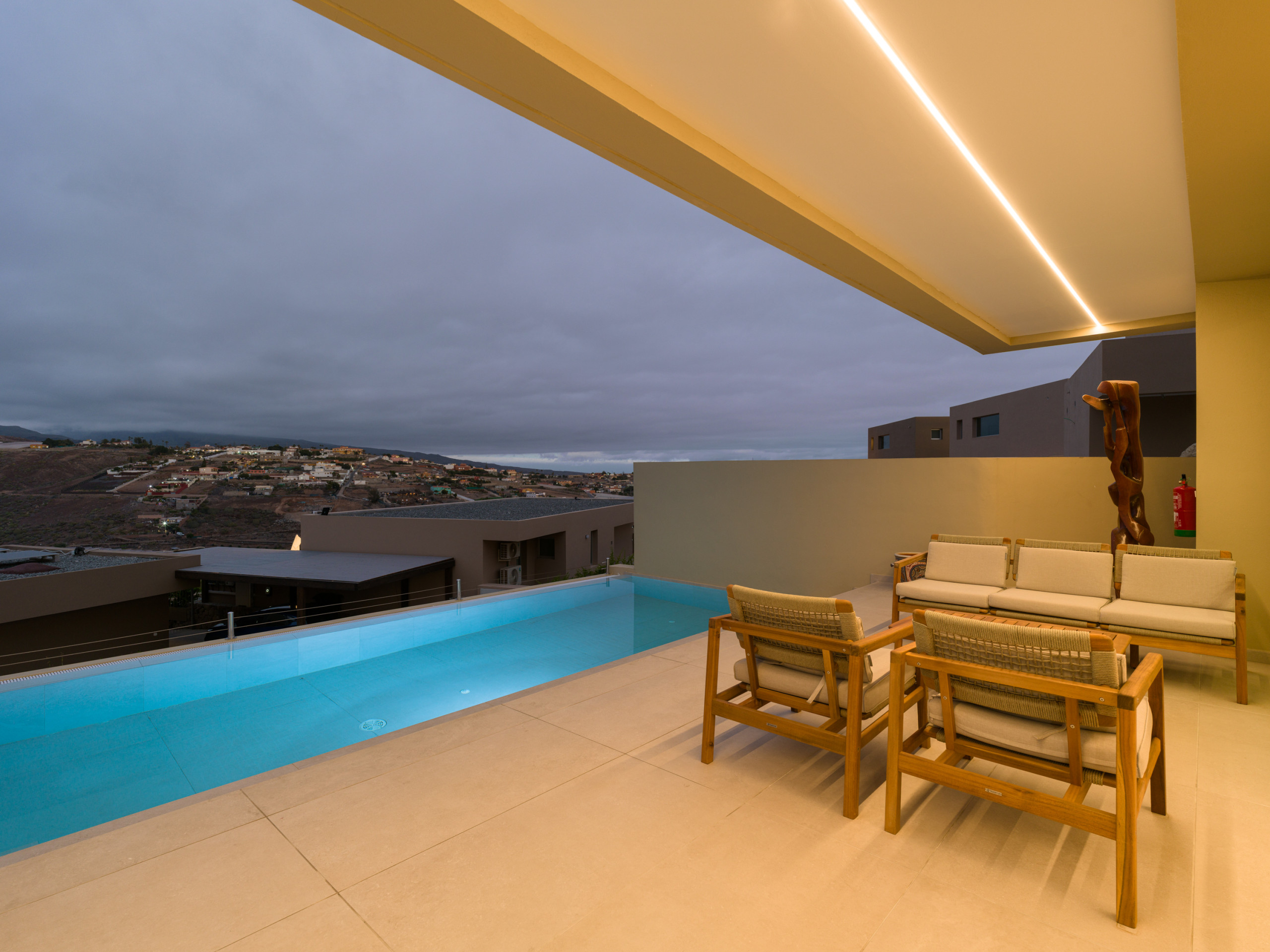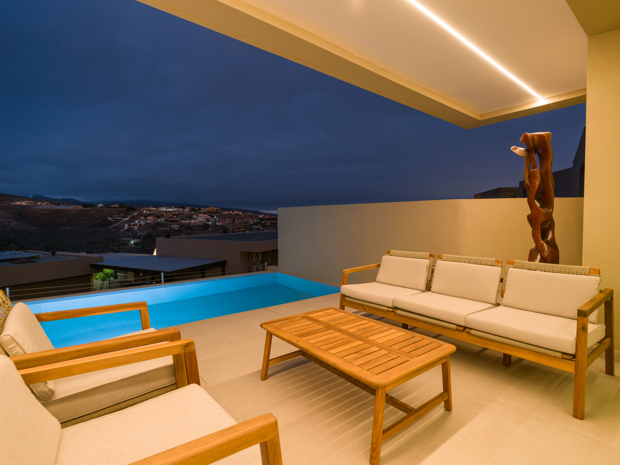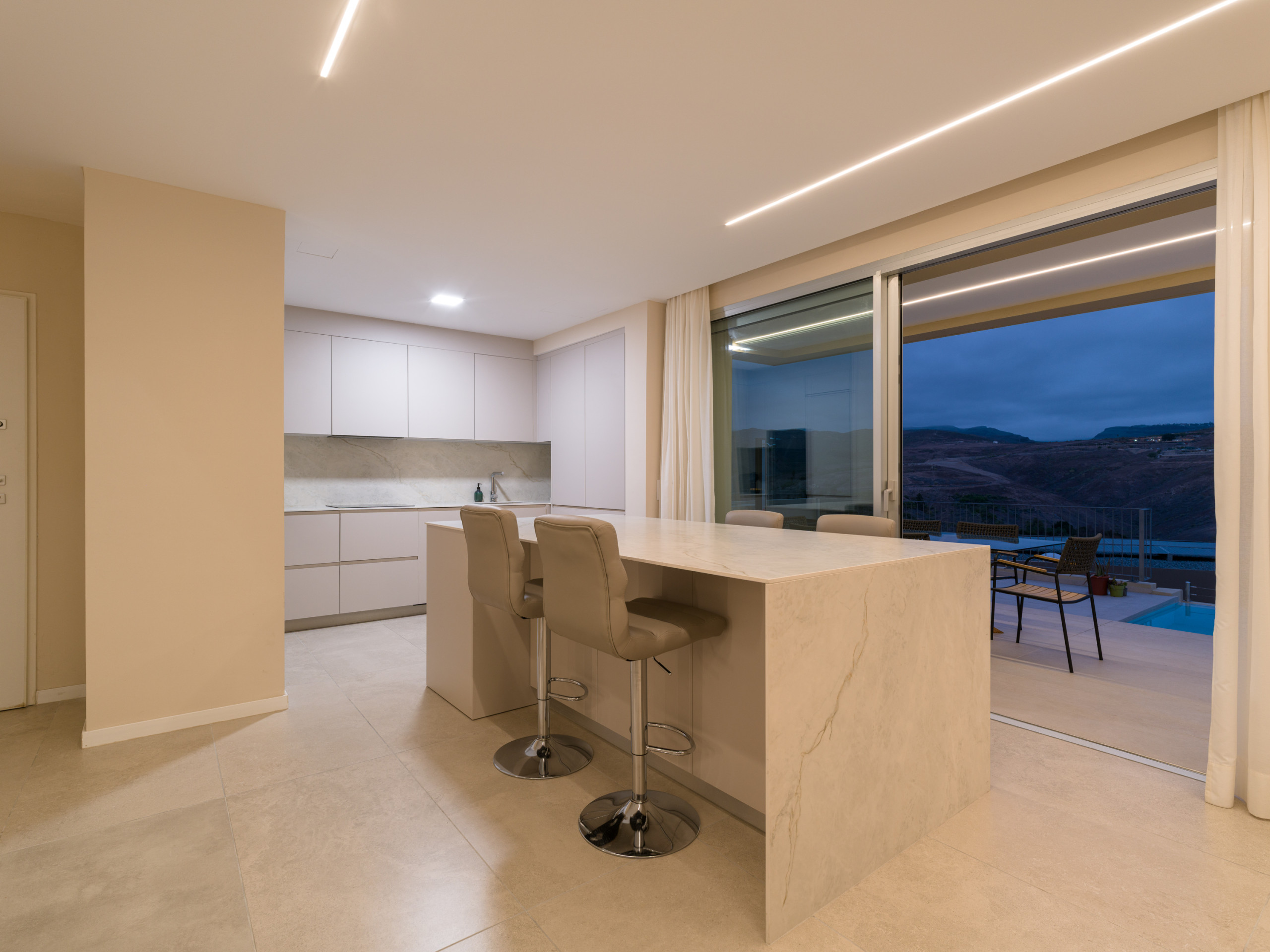 New construction, fully equipped villa with a terrace and private heated pool, located in the private Salobre Golf urbanization and surrounded by nature, with wonderful mountain views and all the amenities for a perfect holiday in the south of Gran Canaria.