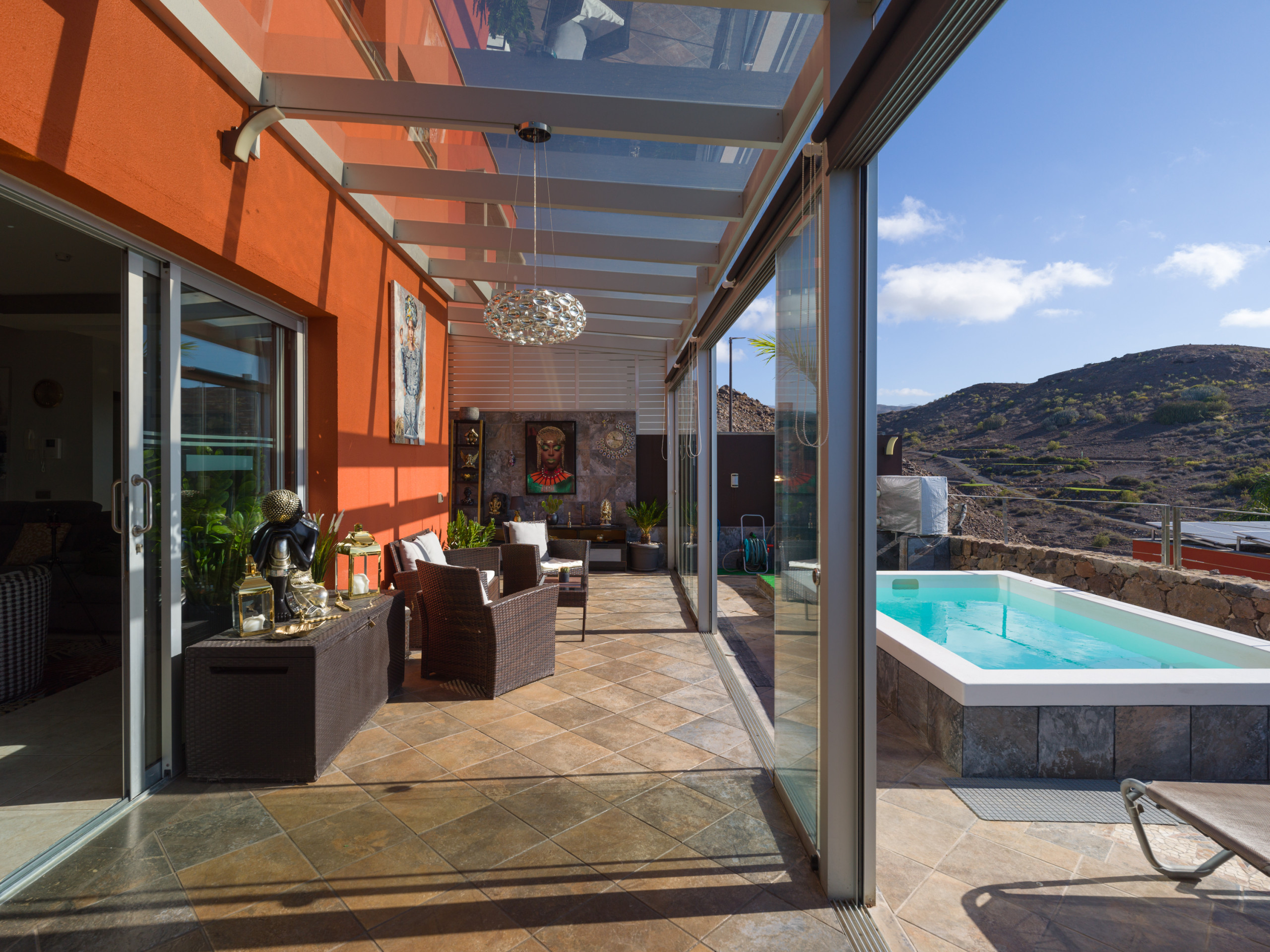 Fully-equipped independent villa with private pool, sun terrace and bbq, located in the residential area of Sonnenland, with wonderful views of Maspalomas and the sea, for a perfect holiday in the south of Gran Canaria.