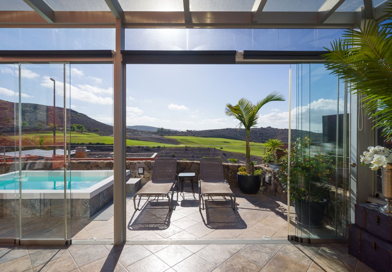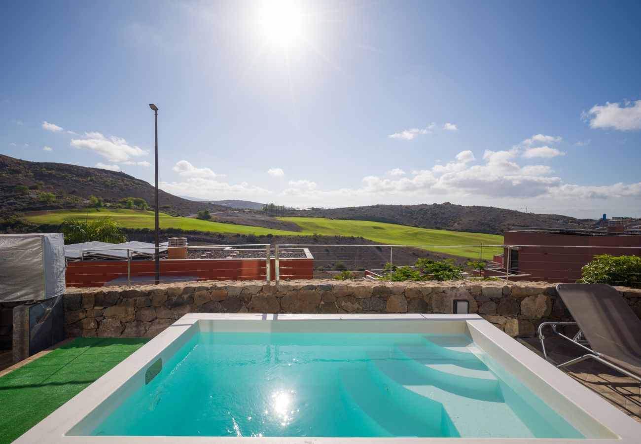 Renovated fully-equipped independent villa with private plunge pool and covered terrace with wonderful views, located at the foot of the golf course in the private resort Salobre Golf and surrounded by nature, with views of the mountains and the golf course, and with all services available for a perfect holiday in the south of Gran Canaria.