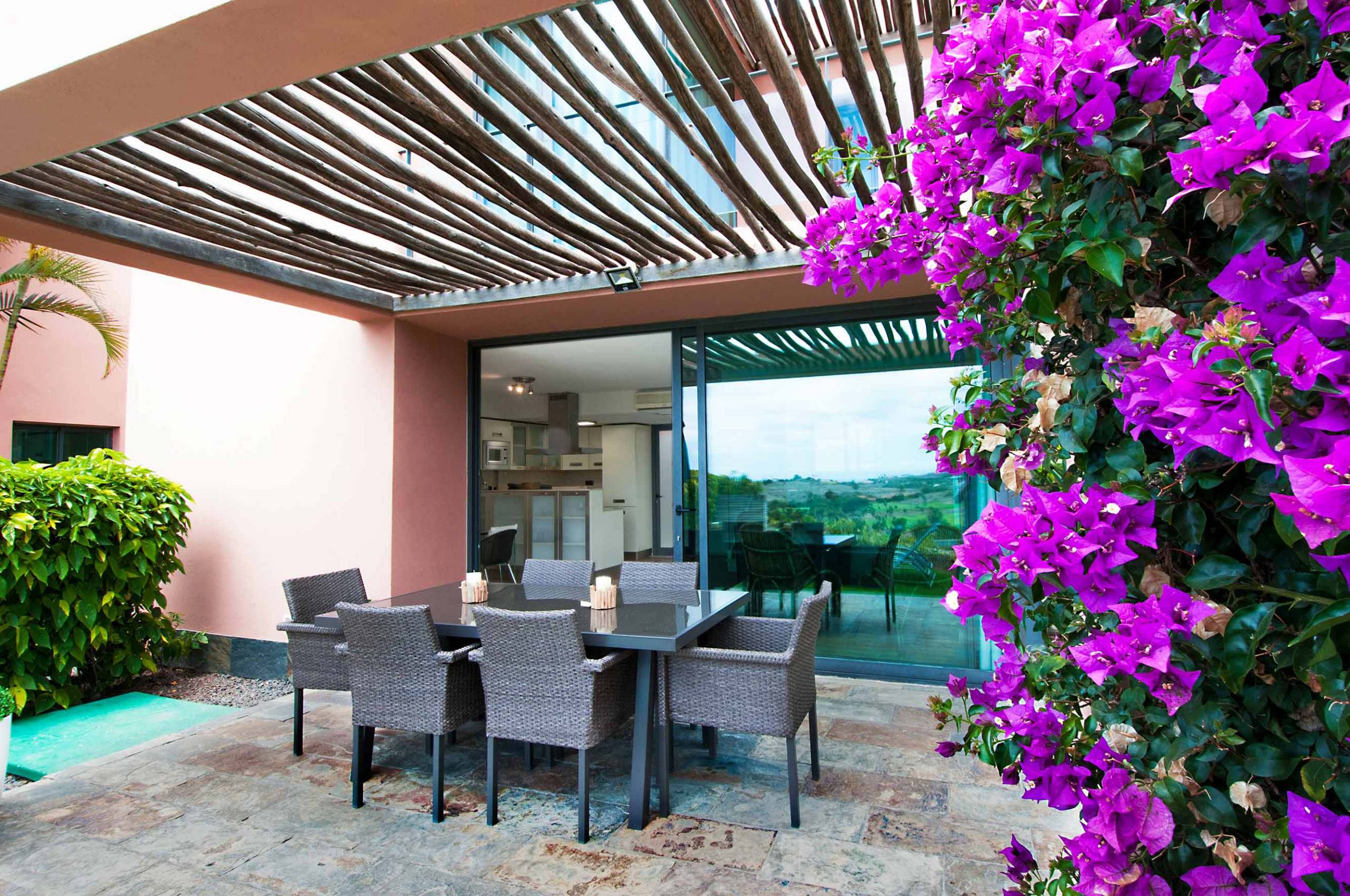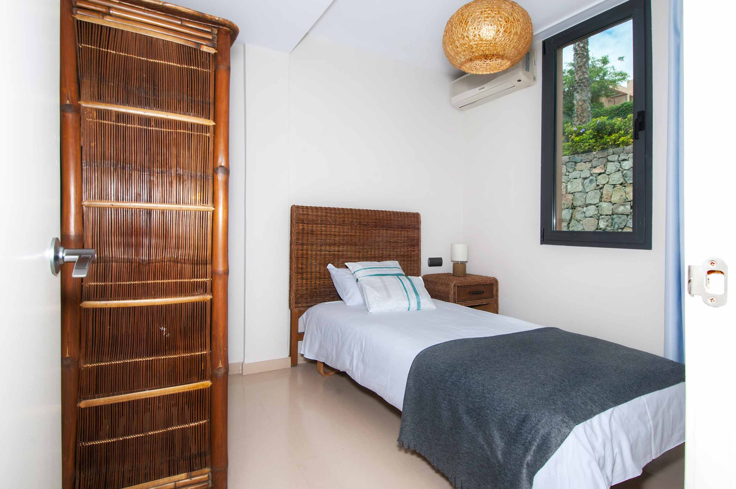 Free Wi-Fi and air conditioning are available throughout the villa. It includes a private covered parking space for one vehicle. The gated community offers 24-hour security, a supermarket, restaurants, and two full golf courses. The motorway is less than 1 km away, and the airport is a 30-minute drive.