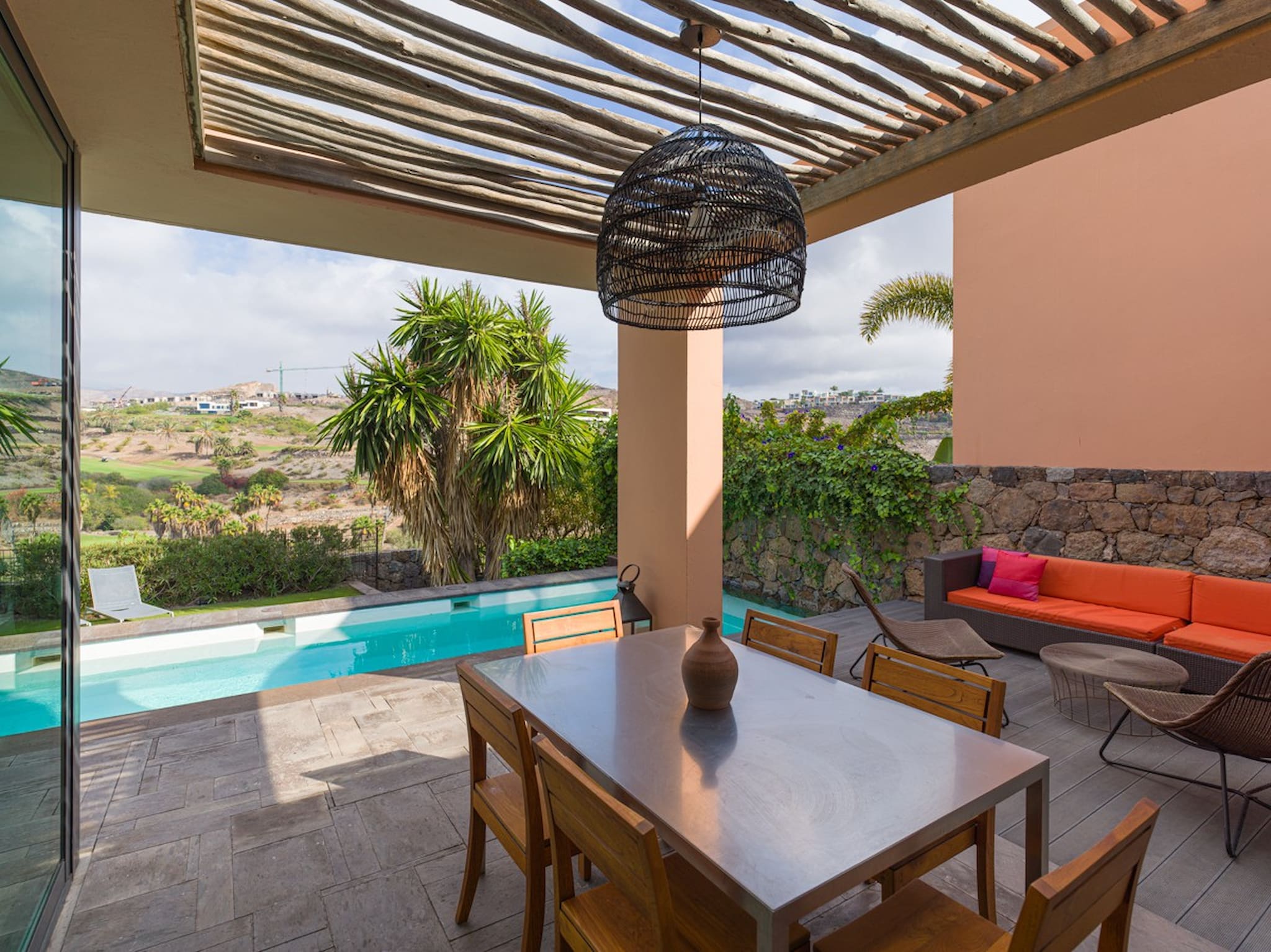 Fully-equipped independent villa with garden, terrace and heated private pool, located above the golf course in the private resort Salobre Golf and surrounded by nature, with wonderful views of the sea, the golf course and the mountains, and with all services available for a perfect holiday in the south of Gran Canaria.