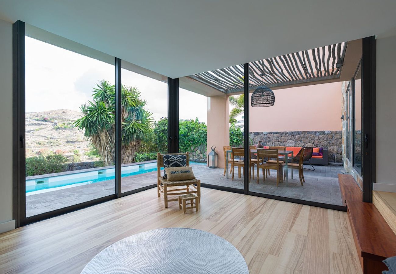 Renovated, fully-equipped independent villa with garden, terrace and private swimming pool, located at the foot of the golf course in the private resort Salobre Golf and surrounded by nature, with wonderful views of the mountains and the golf course, and with all services available for a perfect holiday in the south of Gran Canaria.
